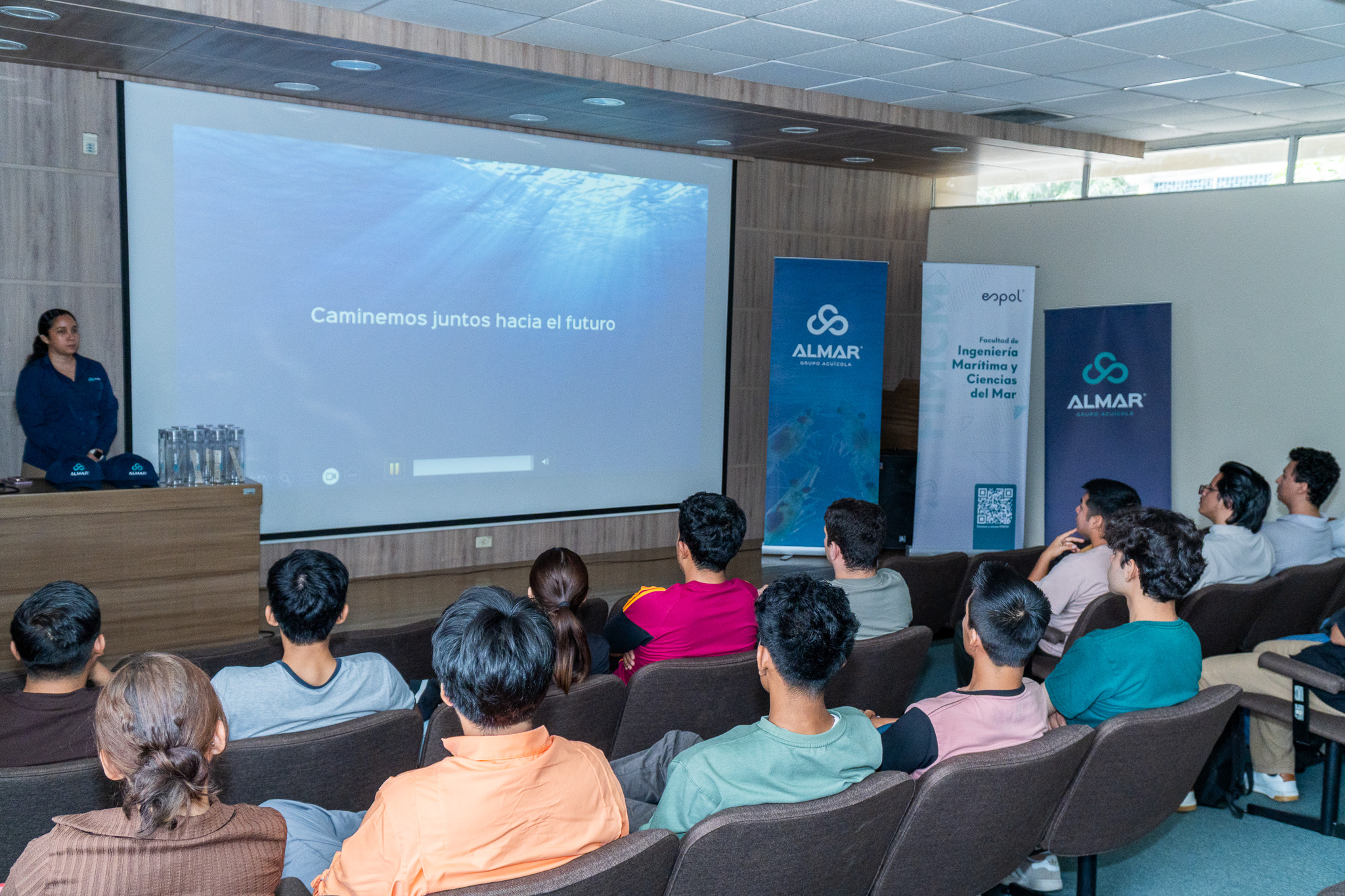 La Facultad de Ingeniería Marítima y Ciencias del Mar (FIMCM) quiere expresar su más profundo reconocimiento a ALMAR GRUPO ACUICOLA y GRUPO CAMARONERO CHAMPMAR por su destacada participación en la Semana Empresarial de Acuicultura. Su compromiso con la excelencia, la innovación y la sostenibilidad en la producción de alimentos acuáticos fue una verdadera lección magistral para nuestra comunidad estudiantil. Al abrir sus puertas y compartir su know-how, no solo mostraron el estado del arte de la industria camaronera y acuícola, sino que sembraron en nuestros alumnos la semilla del emprendimiento y la responsabilidad ambiental, demostrando que la acuicultura es una respuesta tangible a los desafíos alimentarios del siglo XXI.